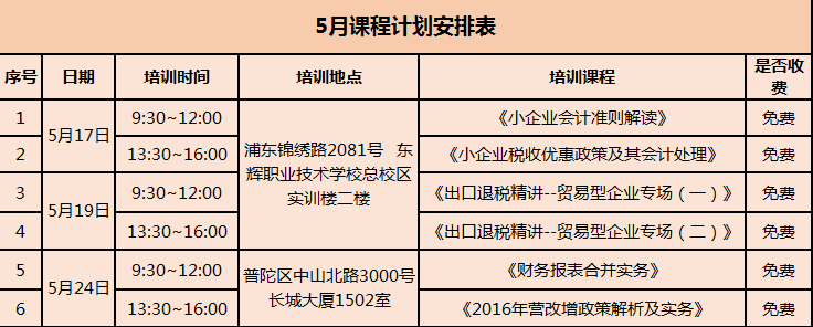 2016年5月小微培训基地课程表