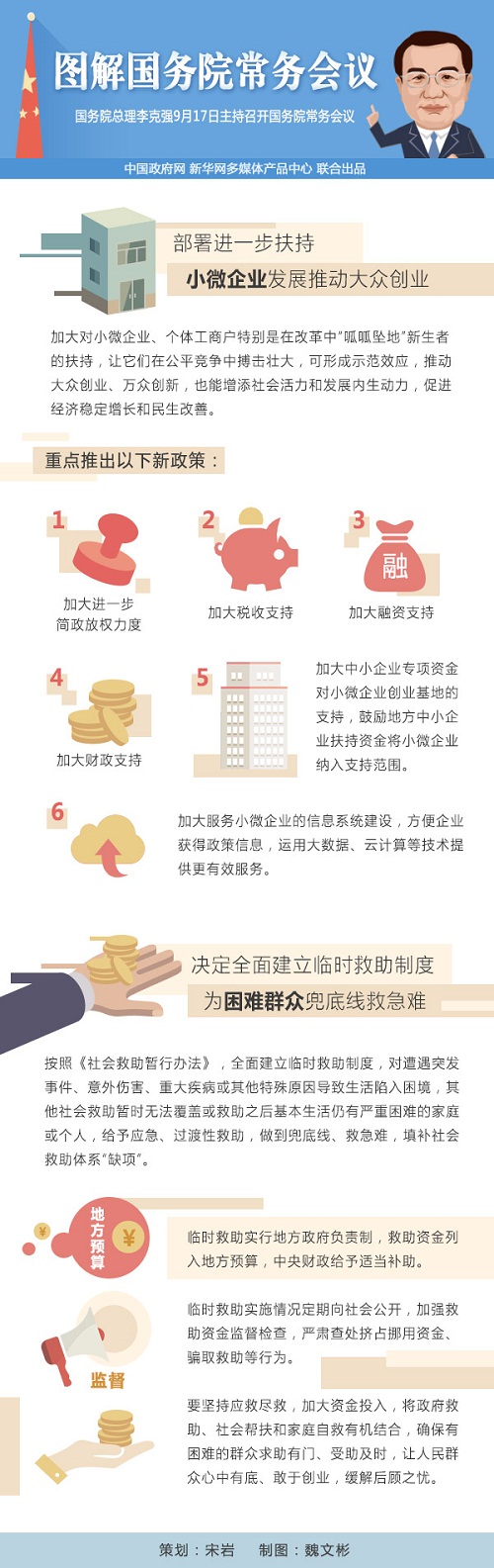 会议指出,小微企业是发展的生力军、就业的主渠道、创新的重要源泉。在推进简政放权,尤其是实施商事制度等改革后,新设企业大幅增加。加大对小微企业、个体工商户特别是在改革中“呱呱坠地”新生者的扶持,让它们在公平竞争中搏击壮大,可形成示范效应,推动大众创业、万众创新,也能增添社会活力和发展内生动力,促进经济稳定增长和民生改善。