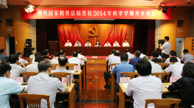 9月10日上午,中共国家税务总局党校举行2014年秋季学期开学典礼,第八期副司局级党员干部进修班和第二批全国税务领军人才培养研修班共164名学员参加。税务总局党组成员、副局长、党校第一副校长宋兰受党组书记、局长王军委托出席开学典礼,并在动员讲话中强调,切实加强干部理想信念和道德品行教育,准确把握内容,优化教学安排,增强教育的针对性、生动性、实效性和长效性。