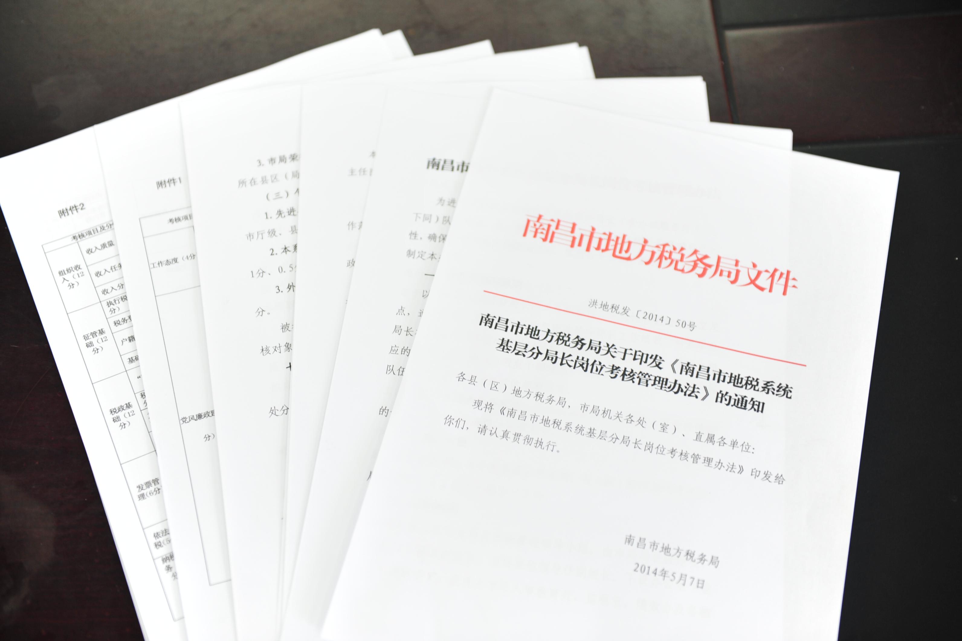 今年是全国税务系统的绩效管理试运行年,上半年总局机关和9个省(市)税务局试点探索,7月1日在全国税务系统全面推开。作为设区市级地税局,南昌市地税局一直在探索通过制定考评指标,落实工作责任倒逼职能转变、工作改进,通过评价工作业绩、强化结果运用破解管理顽疾、提升工作质效。《基层分局长岗位考核管理办法》的出台,就是南昌市地税局绩效管理的一次有益探索。