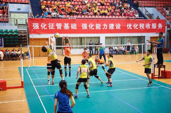 在比赛中,来自全省地税系统的近200名运动员以“参与、团结、奋进、快乐”为宗旨,展现了更高、更快、更强的体育精神。赛场上,双方竞争激烈,跳跃、扣杀、吊传……队员各展所长,顽强拼搏,力争上游。赛场下,拉拉队员呐喊助威,体育馆中欢呼声、加油声此起彼伏,不绝于耳。这次锦标赛赛出了水平,增进了友谊,培养了健康、阳光的生活情趣,充分展现了湖南地税人精诚团结、协作配合的团队意识和敢于拼搏、勇于争先的进取精神。
