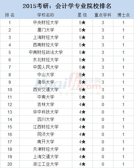 2015考研:会计学专业院校排名及专业介绍