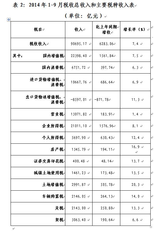 (一)1-9月税收收入增长的主要特点