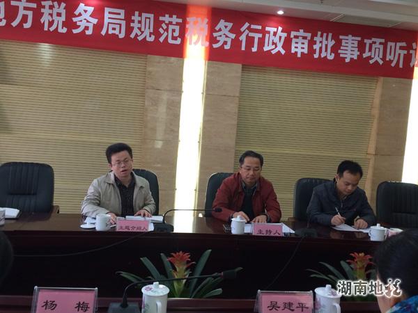 近日,为落实总局要求,规范省以下(不含省本级)税务行政审批项目,湖南省地税局就市州、县(市)区两级税务行政审批事项举行公开听证。听证会严格按照《湖南省行政程序规定》相关规定和要求进行。听证公告发布后,广泛接受报名,经筛选、确定了9名听证代表。听证会采取圆桌形式,代表们对听证主题内容充分发表意见,现场互动良好。下一步,省地税局将认真梳理代表意见,对市州及县(市)区局税务行政审批事项目录清单进行修改,制定出税收规范性文件对外公布。
