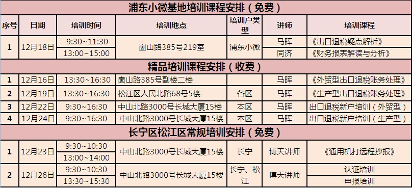 12月培训课程安排如下 如需咨询和报名 请拨打53559696-1211.