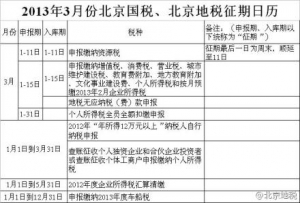 2013年3月份 征期日历,请大家合理安排时间: