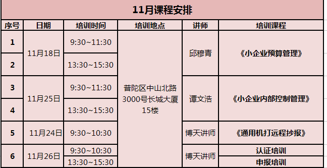本月培训课程安排如下,如需培训 请拨打53559696-1211进行报名。