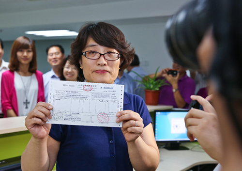 8月1日零时,范坚与山东省委常委、副省长孙伟一起见证营改增试点企业山东广播电视台开出的第一张增值税发票